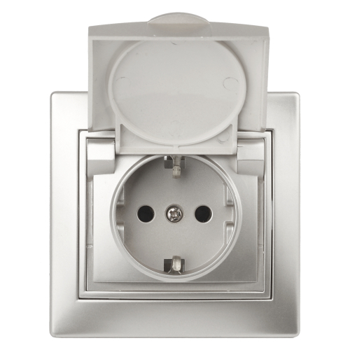 Розетка с крышкой со шторками серии Intro Plano скрытой установки цвет алюминий 1-203-03. Номинальные характеристики 16А 250В. Розетка выполнена из керамики, укомплектована одноместной рамкой, оснащена винтовыми клеммами. Клеммы с двумя отверстиями позволяют соединять соседние розетки шлейфом. Установка в подрозетник производится как на монтажные лапки, так и на винты. Для установки 2-х и более устройств в несколько подрозетников в ряд дополнительно используются многоместные рамки: 2-х постовая - 1-502-хх, 3-х постовая 1-503-хх, 4-х постовая - 1-504-хх (где хх - цветовой код: 01 - белый, 02 - слоновая кость, 03 - алюминий, 04 - шампань, 05 - антрацит, 10 - венге, 11 - сосна).
