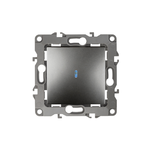 Выключатель 1-клавишный с подсветкой серии Эра 12 скрыт.установки механизм цвет графит 12-1102-12. Номинальные характеристики 10А 250В . Сделан из поликарбоната, оснащёно автоматическими клеммами для быстрй и надёжной фиксации жил кабеля в механиме. Парные клеммы обеспечивают соединение шлейфом. Монтаж в подрозетник производится и на лапки, и на винты. Рамки приобретаются отдельно. Рамки Эра 12: 1 пост 12-5001-хх, 2 поста 12-5002-хх, 3 поста 12-5003-хх, 4 поста 12-5004-хх, 5 постов 12-5005-хх. Рамки Эра 12 Сатин: 1 пост 12-5101-хх, 2 поста 12-5102-хх, 3 поста 12-5103-хх, 4 поста 12-5104-хх, 5 постов - 12-5105-хх (хх - код цвета: 01-белый, 02-слоновая кость, 03-алюминий, 04-шампань, 05-антрацит, 06-чёрный, 07-ольха(белёный дуб-сатин), 08-вишня, 09-дуб, 10-венге, 11-сосна, 21-жёлтый, 22-оранжевый, 23-красный, 24-охра, 25-бордо, 26-лайм, 27-зелёный, 28-голубой, 29-синий).