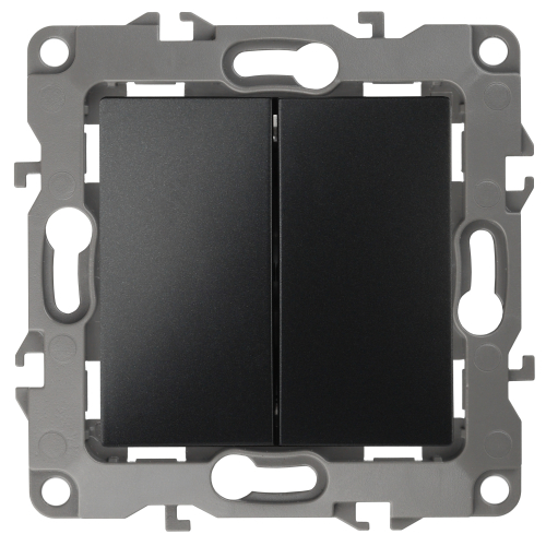 Выключатель 2-клавишный серии Эра 12 скрытой установки механизм цвет антрацит 12-1104-05. Номинальные характеристики 10А 250В . Сделан из поликарбоната, оснащёно автоматическими клеммами для быстрй и надёжной фиксации жил кабеля в механиме. Парные клеммы обеспечивают соединение шлейфом. Монтаж в подрозетник производится и на лапки, и на винты. Рамки приобретаются отдельно.
