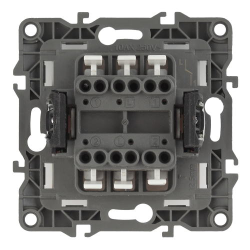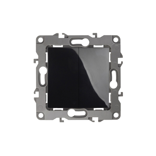 Выключатель 2-клавишный серии Эра 12 скрытой установки механизм цвет чёрный 12-1104-06. Номинальные характеристики 10А 250В . Сделан из поликарбоната, оснащёно автоматическими клеммами для быстрй и надёжной фиксации жил кабеля в механиме. Парные клеммы обеспечивают соединение шлейфом. Монтаж в подрозетник производится и на лапки, и на винты. Рамки приобретаются отдельно. Рамки Эра 12: 1 пост 12-5001-хх, 2 поста 12-5002-хх, 3 поста 12-5003-хх, 4 поста 12-5004-хх, 5 постов 12-5005-хх. Рамки Эра 12 Сатин: 1 пост 12-5101-хх, 2 поста 12-5102-хх, 3 поста 12-5103-хх, 4 поста 12-5104-хх, 5 постов - 12-5105-хх (хх - код цвета: 01-белый, 02-слоновая кость, 03-алюминий, 04-шампань, 05-антрацит, 06-чёрный, 07-ольха(белёный дуб-сатин), 08-вишня, 09-дуб, 10-венге, 11-сосна, 21-жёлтый, 22-оранжевый, 23-красный, 24-охра, 25-бордо, 26-лайм, 27-зелёный, 28-голубой, 29-синий).