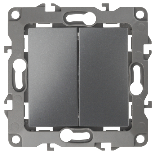 Выключатель 2-клавишный проходной серии Эра 12 скрытой установки механизм цвет графит 12-1106-12. Номинальные характеристики 10А 250В . Сделан из поликарбоната, оснащёно автоматическими клеммами для быстрй и надёжной фиксации жил кабеля в механиме. Парные клеммы обеспечивают соединение шлейфом. Монтаж в подрозетник производится и на лапки, и на винты. Рамки приобретаются отдельно. Рамки Эра 12: 1 пост 12-5001-хх, 2 поста 12-5002-хх, 3 поста 12-5003-хх, 4 поста 12-5004-хх, 5 постов 12-5005-хх. Рамки Эра 12 Сатин: 1 пост 12-5101-хх, 2 поста 12-5102-хх, 3 поста 12-5103-хх, 4 поста 12-5104-хх, 5 постов - 12-5105-хх (хх - код цвета: 01-белый, 02-слоновая кость, 03-алюминий, 04-шампань, 05-антрацит, 06-чёрный, 07-ольха(белёный дуб-сатин), 08-вишня, 09-дуб, 10-венге, 11-сосна, 21-жёлтый, 22-оранжевый, 23-красный, 24-охра, 25-бордо, 26-лайм, 27-зелёный, 28-голубой, 29-синий).