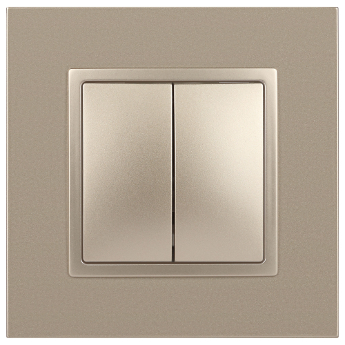 Выключатель 2-клавишный проходной Эра Elegance шампань 14-1106-04. Оснащён автоматическими клеммами для надёжной фиксации жил кабеля в механизме. Рамки приобретаются отдельно.