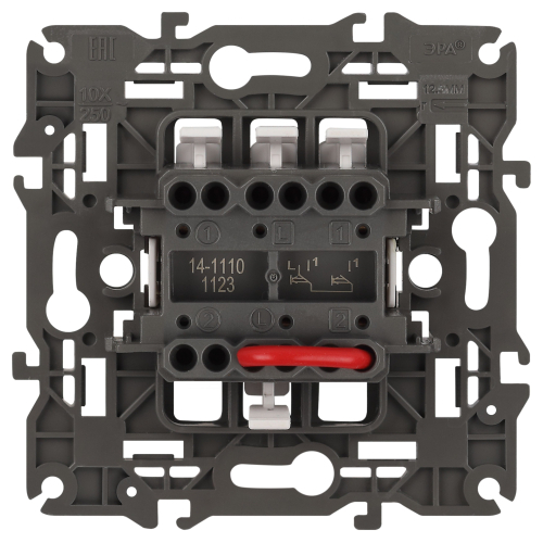 Переключатель для жалюзи типа "Кнопка" серии Эра Elegance скрытой установки механизм 14-1110-99. Номинальные характеристики 10А 250В . Сделан из поликарбоната, оснащён автоматическими клеммами для быстрой и надёжной фиксации жил кабеля в механиpме. Монтаж в подрозетник производится и на лапки, и на винты. Рамки приобретаются отдельно. Клавиши приобретаются отдельно: 12-6203-хх (хх - код цвета: 01-белый, 02-слоновая кость, 03-алюминий, 04-шампань, 05-антрацит)