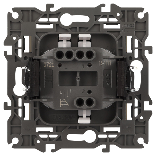 Кнопка включения серии Эра Elegance скрытой установки механизм цвет белый 14-1111-01. Номинальные характеристики: 10А-250В. Сделана из поликарбоната, оснащена автоматическими клеммами для быстрой и надёжной фиксации жил кабеля в механизме. Монтаж в подрозетник производится и на лапки, и на винты. Рамки приобретаются отдельно. Рамки Эра Elegance: 1 пост 14-5001-хх, 2 поста 14-5002-хх, 3 поста 14-5003-хх, 4 поста 14-5004-хх, 5 постов 14-5005-хх. (хх - код цвета: 01-белый, 02-слоновая кость, 03-алюминий, 04-шампань, 05-антрацит). Может также комплектоваться рамками из натуральных материалов.