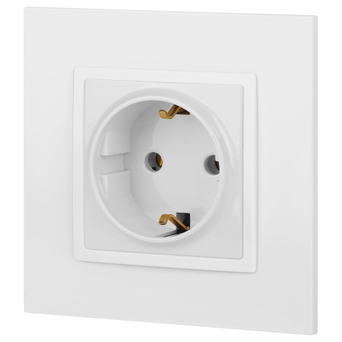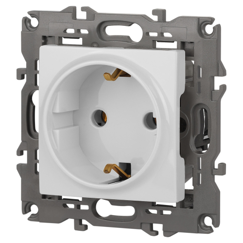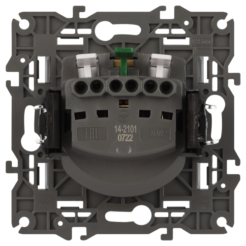 Розетка с заземлением Эра Elegance белый 14-2101-01. Оснащёна автоматическими клеммами для надёжной фиксации жил кабеля в механизме. Рамки приобретаются отдельно. Рамки Эра Elegance ПЛАСТИК: 1 пост 14-5001-хх, 2 поста 14-5002-хх, 3 поста 14-5003-хх, 4 поста 14-5004-хх, 5 постов 14-5005-хх; СТЕКЛО: 1 пост 14-5101-хх, 2 поста 14-5102-хх, 3 поста 14-5103-хх, 4 поста 14-5104-хх; МЕТАЛЛ: 1 пост 14-5201-хх, 2 поста 14-5202-хх, 3 поста 14-5203-хх, 4 поста 14-5204-хх; ДЕРЕВО: 1 пост 14-5301-хх, 2 поста 14-5302-хх, 3 поста 14-5303-хх, 4 поста 14-5304-хх (хх - код цвета: 00-прозрачный, 01-белый, белёный дуб, 02-слоновая кость, 03-алюминий, 04-шампань, 05-чёрный, чёрное дерево, 07-ясень, 09-дуб, 10-венге, 11-клён, 14-медь, 21-жёлтый, 22-оранжевый, 23-красный, 25-бордо, 26-лайм, 27-зелёный, 28-голубой, 29-синий, 30-розовый, 31-мокко, 32-серый, 41-сталь, 42-титан).