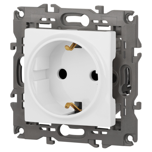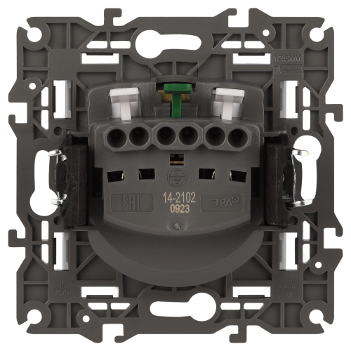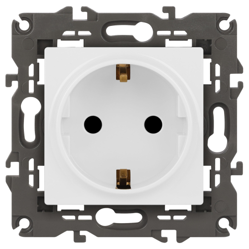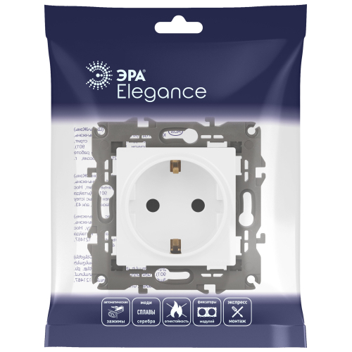 Розетка с заземлением со шторками Эра Elegance белый 14-2102-01. Оснащёна автоматическими клеммами для надёжной фиксации жил кабеля в механизме. Рамки приобретаются отдельно. Рамки Эра Elegance ПЛАСТИК: 1 пост 14-5001-хх, 2 поста 14-5002-хх, 3 поста 14-5003-хх, 4 поста 14-5004-хх, 5 постов 14-5005-хх; СТЕКЛО: 1 пост 14-5101-хх, 2 поста 14-5102-хх, 3 поста 14-5103-хх, 4 поста 14-5104-хх; МЕТАЛЛ: 1 пост 14-5201-хх, 2 поста 14-5202-хх, 3 поста 14-5203-хх, 4 поста 14-5204-хх; ДЕРЕВО: 1 пост 14-5301-хх, 2 поста 14-5302-хх, 3 поста 14-5303-хх, 4 поста 14-5304-хх (хх - код цвета: 00-прозрачный, 01-белый, белёный дуб, 02-слоновая кость, 03-алюминий, 04-шампань, 05-чёрный, чёрное дерево, 07-ясень, 09-дуб, 10-венге, 11-клён, 14-медь, 21-жёлтый, 22-оранжевый, 23-красный, 25-бордо, 26-лайм, 27-зелёный, 28-голубой, 29-синий, 30-розовый, 31-мокко, 32-серый, 41-сталь, 42-титан).