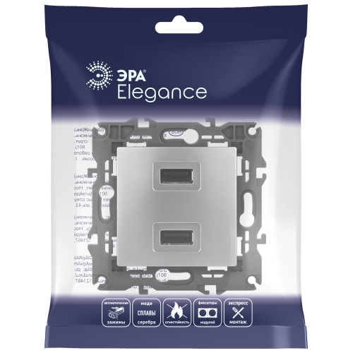 Устройство зарядное USB серии Эра Elegance цвет алюминий 14-4110-03. Номинальные характеристики . Оснащёно автоматическими клеммами для надёжной фиксации жил кабеля в механизме. Рамки приобретаются отдельно. Рамки Эра Elegance ПЛАСТИК: 1 пост 14-5001-хх, 2 поста 14-5002-хх, 3 поста 14-5003-хх, 4 поста 14-5004-хх, 5 постов 14-5005-хх; СТЕКЛО: 1 пост 14-5101-хх, 2 поста 14-5102-хх, 3 поста 14-5103-хх, 4 поста 14-5104-хх; МЕТАЛЛ: 1 пост 14-5201-хх, 2 поста 14-5202-хх, 3 поста 14-5203-хх, 4 поста 14-5204-хх; ДЕРЕВО: 1 пост 14-5301-хх, 2 поста 14-5302-хх, 3 поста 14-5303-хх, 4 поста 14-5304-хх (хх - код цвета: 00-прозрачный, 01-белый, белёный дуб, 02-слоновая кость, 03-алюминий, 04-шампань, 05-чёрный, чёрное дерево, 07-ясень, 09-дуб, 10-венге, 11-клён, 14-медь, 21-жёлтый, 22-оранжевый, 23-красный, 25-бордо, 26-лайм, 27-зелёный, 28-голубой, 29-синий, 30-розовый, 31-мокко, 32-серый, 41-сталь, 42-титан).
