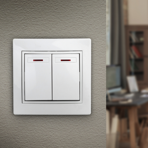 Выключатель двойной с подсветкой, 10А-250В, СУ, б.л., Plano, белый