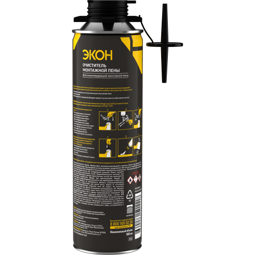 Готовое к применению многофункциональное средство станет незаменимым помощником в процессе работы. Оно отлично удаляет остатки неотвердевшей пены или полиуретанового клея, что делает уборку после ремонта более простой. Также используется для очистки пистолетов и клапанов баллонов, обеспечивая их долгосрочную эксплуатацию. Важно помнить: данное средство может повредить некоторые пластмассы, лакированные и окрашенные поверхности, ткани. Поэтому перед началом работы рекомендуется протестировать его на небольшом и незаметном участке. При необходимости стоит защитить чувствительные материалы, чтобы избежать разрушения. С этим средством работа станет более комфортной и быстрой. Его эффективность позволит сосредоточиться на выполнении задач без задержек. Не упустите шанс облегчить свой процесс очистки, обеспечив качественный результат. Применение средства гарантирует надежность и высокую производительность во время использования. Очиститель монтажной пены Экон – универсальное средство для удаления незатвердевшей однокомпонентной полиуретановой монтажной пены с рабочих инструментов и поверхностей.