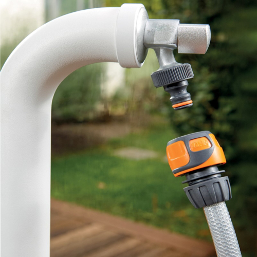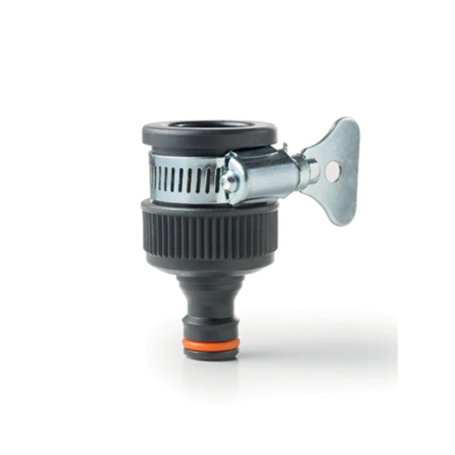 Для подсоединения штуцера шланга к безрезьбовым кранам. С металлическим зажимом в виде бабочки для безопасного применения.
