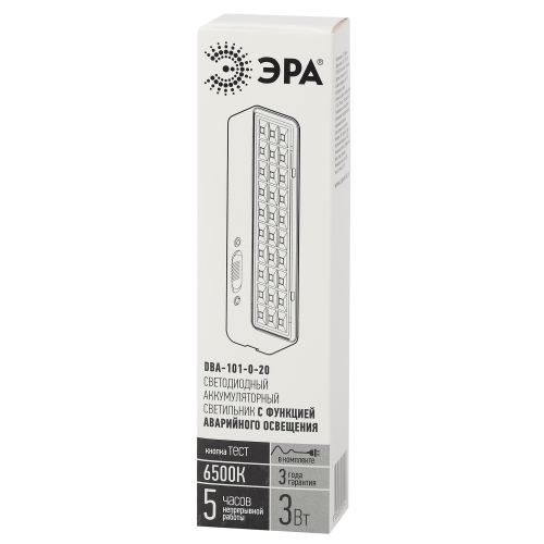 Светильник аварийный светодиодный. Область применения: Предназначен для освещения путей эвакуации, коридоров, проходов, запасных дверей; как эвакуационные или указательные светильники (при наличии пиктограмм); Человек-стрелка; не менее 90 минут работы в аварийном режиме; наличие кнопки "ТЕСТ" для проверки работы в аварийном режиме. Гарантия:3 года. Диапазон рабочих температур:(+1+35). Класс энергоэффективности: A. Климатическое исполнение: УХЛ4. Преимущества:2 режима работы; время автономной работы 300 минут; наличие кнопки "ТЕСТ" для проверки работы в аварийном режиме. Цветовая температура: 6500K. Материал корпуса: пластик. Габариты: 160x42x25мм. Потребляемая мощность: 3Вт. Степень защиты от окружающей среды: IP20. Тип рассеивателя: прозрачный. Тип кривой: Д. Питающее напряжение светильника: 230Вт.