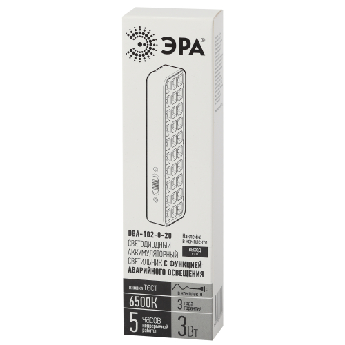 Светильник аварийный светодиодный для освещения путей эвакуации, коридоров, проходов, запасных дверей; как эвакуационные или указательные светильники (при наличии пиктограмм).; 2 режима работы; время автономной работы 300 минут; наличие кнопки "ТЕСТ" для проверки работы в аварийном режиме. Гарантия:3 года.Диапазон рабочих температур:(+1+35). Класс энергоэффективности:A. Климатическое исполнение:УХЛ4. Преимущества:2 режима работы; время автономной работы 300 минут; наличие кнопки "ТЕСТ" для проверки работы в аварийном режиме; наклейка "ВЫХОД" в комплекте.Цветовая температура:6500K. Материал корпуса:пластик. Габариты: 202x56x30мм. Потребляемая мощность:3Вт. Степень защиты от окружающей среды:IP20. Тип рассеивателя: прозрачный. Тип кривой: Д. Питающее напряжение светильника: 230Вт.