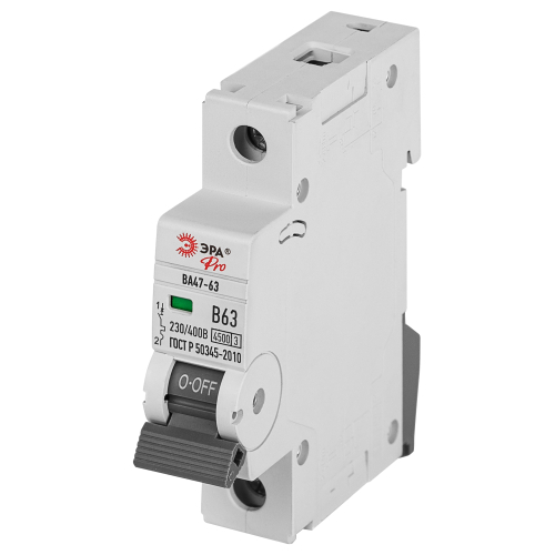 Автоматический выключатель - контактный коммутационный аппарат, способный включать токи, проводить их и отключать при нормальных условиях в цепи, а также включать, проводить в течение нормированного (заданного) времени и автоматически отключать токи при нормированных ненормальных условиях в цепи, таких, как токи короткого замыкания. Автоматические выключатели бывают одно-, двух-, трёх- или четырёхполюсными и имеют следующие конструктивные узлы: главную контактную систему, дугогасительную систему, привод расцепляющего устройства, расцепители. Автоматические выключатели ВА47-63 предназначены для защиты распределительных и групповых цепей, имеющих различную нагрузку: электроприборы, освещение выключатели с характеристикой В; двигатели с небольшими пусковыми токами (компрессор, вентилятор) выключатели с характеристикой C; двигатели с большими пусковыми токами (подъемные механизмы, насосы) выключатели с характеристикой D.