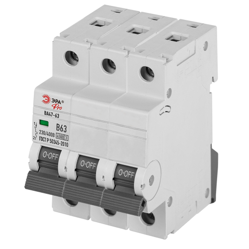 Автоматический выключатель - контактный коммутационный аппарат, способный включать токи, проводить их и отключать при нормальных условиях в цепи, а также включать, проводить в течение нормированного (заданного) времени и автоматически отключать токи при нормированных ненормальных условиях в цепи, таких, как токи короткого замыкания. Автоматические выключатели бывают одно-, двух-, трёх- или четырёхполюсными и имеют следующие конструктивные узлы: главную контактную систему, дугогасительную систему, привод расцепляющего устройства, расцепители. Автоматические выключатели ВА47-63 предназначены для защиты распределительных и групповых цепей, имеющих различную нагрузку: электроприборы, освещение выключатели с характеристикой В; двигатели с небольшими пусковыми токами (компрессор, вентилятор) выключатели с характеристикой C; двигатели с большими пусковыми токами (подъемные механизмы, насосы) выключатели с характеристикой D.