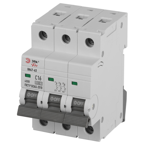 Автоматический выключатель - контактный коммутационный аппарат, способный включать токи, проводить их и отключать при нормальных условиях в цепи, а также включать, проводить в течение нормированного (заданного) времени и автоматически отключать токи при нормированных ненормальных условиях в цепи, таких, как токи короткого замыкания. Автоматические выключатели бывают одно-, двух-, трёх- или четырёхполюсными и имеют следующие конструктивные узлы: главную контактную систему, дугогасительную систему, привод расцепляющего устройства, расцепители. Автоматические выключатели ВА47-63 предназначены для защиты распределительных и групповых цепей, имеющих различную нагрузку: электроприборы, освещение выключатели с характеристикой В; двигатели с небольшими пусковыми токами (компрессор, вентилятор) выключатели с характеристикой C; двигатели с большими пусковыми токами (подъемные механизмы, насосы) выключатели с характеристикой D.