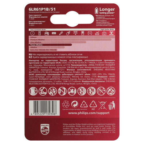 • Щелочные батареи Philips содержат 0 % кадмия, ртути и свинца