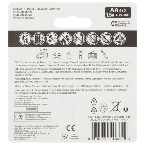 Серия XTRALIFE - экономичная серия щелочных батареек KODAK.