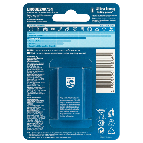 • Щелочные батареи Philips содержат 0 % кадмия, ртути и свинца