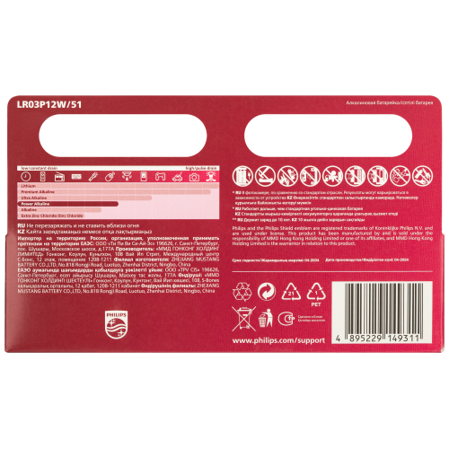 • Щелочные батареи Philips содержат 0 % кадмия, ртути и свинца