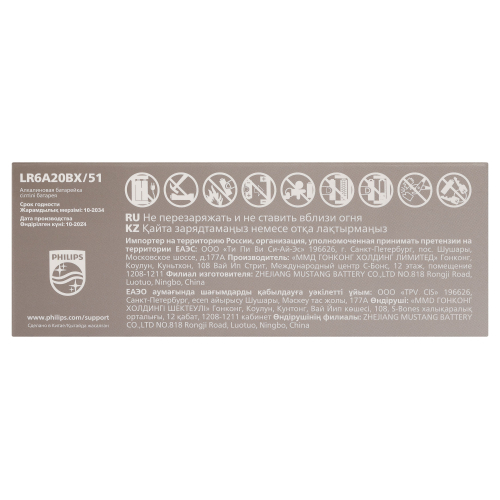 • Щелочные батареи Philips содержат 0 % кадмия, ртути и свинца