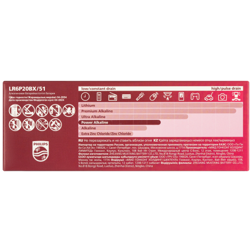 Продолжительное время работы энергоемких устройств. Современные электронные устройства, такие как электронные игрушки и портативные аудиоплееры, требуют все больше энергии. Для более долгой работы таких устройств используйте щелочные батареи Philips серии Power.