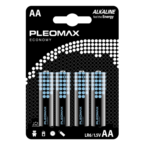 Серия Economy Pleomax для устройств с постоянным невысоким энегопотреблением. Специальная упаковка позволяет легко извлекать и с удобством хранить батарейки.