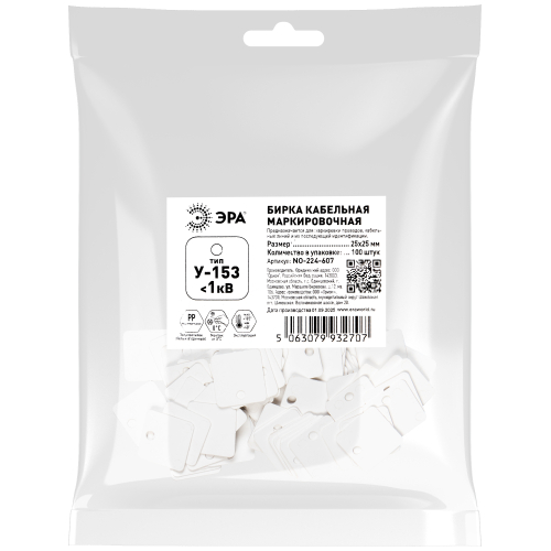 Квадратная бирка У-153 для кабелей напряжением до 1 кВ, размер 25 х 25 мм. Бирки маркировочные используются для маркировки кабельных линий, узлов и проводов, они придают информативность кабельной линии, что позволяет быстро идентифицировать кабель без использования тестового оборудования. Собственное производство ЭРА.