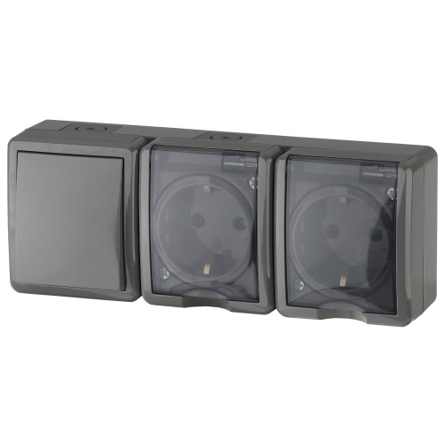 Блок две розетки с выключателем IP54 Эра Эксперт открытой установки серый 11-7403-03. Номинальные характеристики 16А(10AX) 250В. Устройство выполнено из качественного поликарбоната, оснащёно уникальными винтовыми клеммами ЭКСПЕРТ для максимально качественного зажима кабеля в механизме.