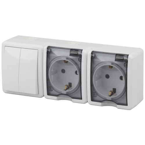Блок две розетки с двойным выключателем IP54 Эра Эксперт открытой установки белый 11-7404-01. Номинальные характеристики 16А(10AX) 250В. Устройство выполнено из качественного поликарбоната, оснащёно уникальными винтовыми клеммами ЭКСПЕРТ для максимально качественного зажима кабеля в механизме.