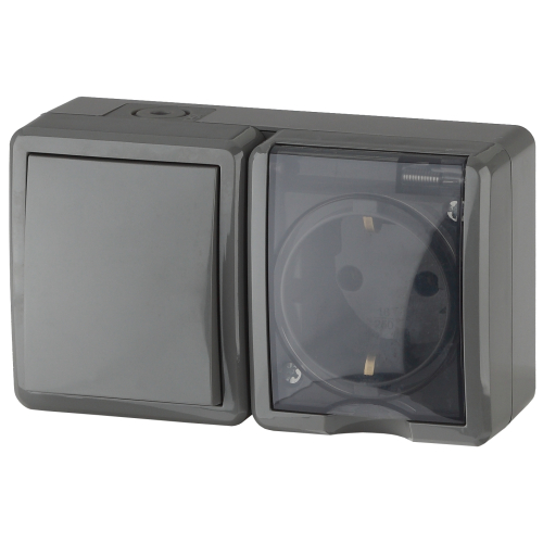 Блок розетка с выключателем влагозащищённый IP54 серии Эра Эксперт открытой установки цвет серый 11-7401-03. Номинальные характеристики 16А 250В. Устройство выполнено из качественного поликарбоната, оснащёно уникальными винтовыми клеммами ЭКСПЕРТ для максимально качественного зажима кабеля в механизме.