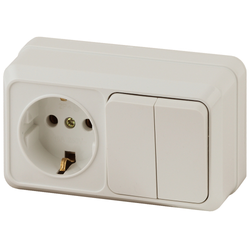 Блок розетка с выключателем Intro Quadro 2-702-02 двойным горизонтальный 10(16)А-250В, IP20, ОУ, слоновая кость