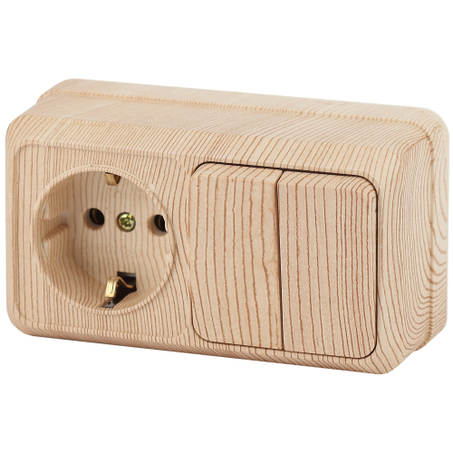 Блок розетка с выключателем Intro Quadro 2-702-11 двойным горизонтальный 10(16)А-250В, IP20, ОУ, сосна