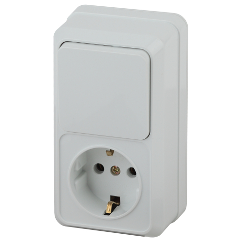 Блок розетка с выключателем Intro Quadro 2-705-01 вертикальный 10(16)А-250В, IP20, ОУ, белый