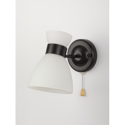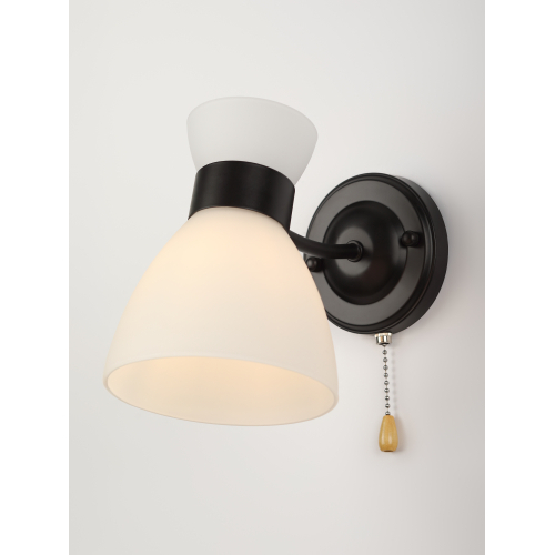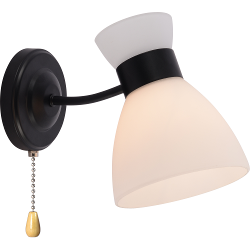 Серия чёрных светильников с опаловыми плафонами — стильное и функциональное решение для современного интерьера. В коллекции люстры на 5 и 8 ламп, а также бра с удобным выключателем-цепочкой. Подходят лампы с цоколем E27, мощностью до 60 Вт (лампы в комплект не входят).