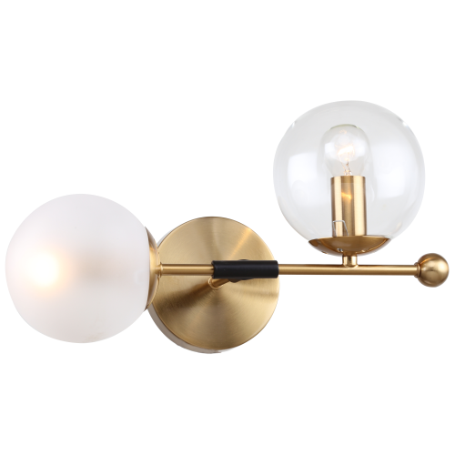 Бра настенное цвета латунь от итальянского бренда Rivoli. Бра имеет 2 круглых плафона – прозрачный и матовый. Выполненное в стиле модерн, бра Rivoli Darlene (арт. 3145-402) отличается запоминающимися декоративными находками. Прозрачный стеклянный плафон светильника настенного представлен в виде канделябра. Круглое латунное основание бра настенного сочетается с плафонами аналогичной круглой формы. Для контрастности данный настенный светильник имеет декоративный элемент чёрного цвета по центру. Корпус бра минималистичен.