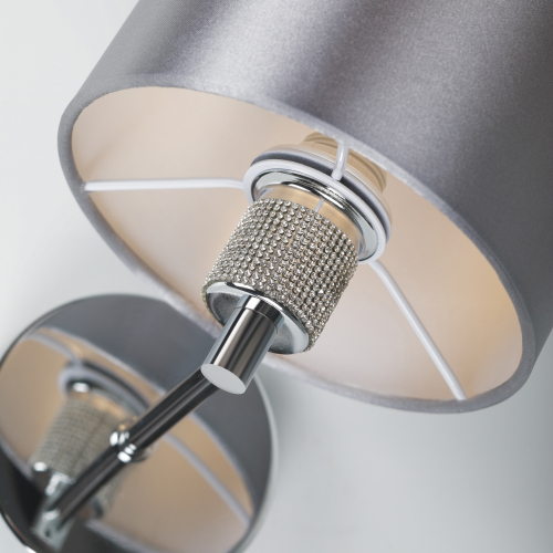 Хромированная арматура бра на стену Ebony от итальянского бренда Rivoli декорирована мелкими камнями кристальной огранки.