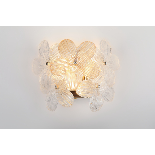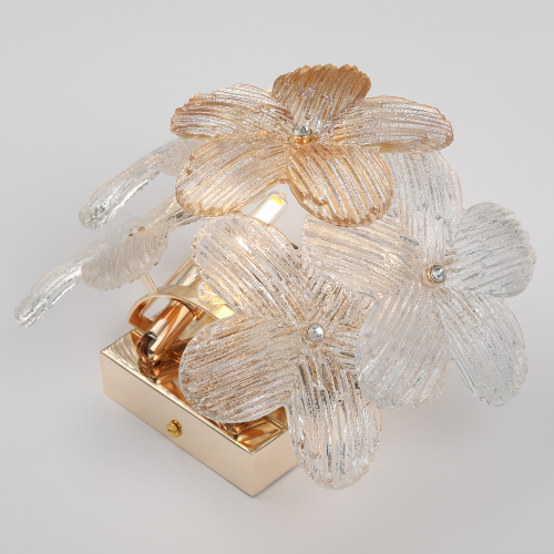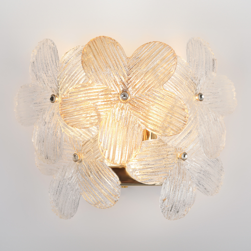 Дизайнерский бра-светильник Rivoli Ethel (арт. 6132-401) под 3 лампы G9 5 Вт. Декоративное прикроватное бра, светильник на стену спальни, гостиной, детской комнаты. Главная особенность оформления — плафон из прозрачных стеклянных элементов в форме распустившихся цветов. Такое дизайнерское бра — воплощение оригинальности и творческого подхода к оформлению пространства.