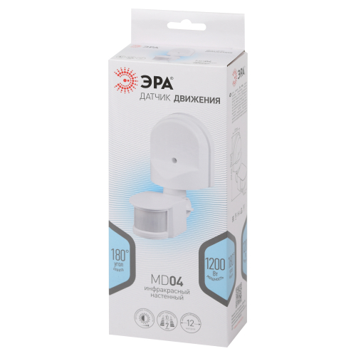 ЭРА MD 04 Датчик движения настенный позволяет производить автоматическое включение осветительных приборов, питающихся от сети 220 В, при появлении движущегося объекта в зоне обнаружения датчика. Благодаря этому , а также наличию регулировки времени задержки выключения и настройки чувствительности к внешней освещенности, обеспечивается экономия не только вашего времени, но и денег за счет разумной Экономии электроэнергии.