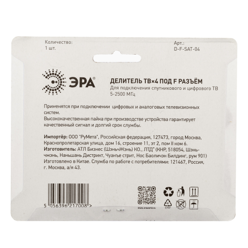 Телевизионный делитель используется в частных и много квартирах домах для подключения нескольких телевизионных аппаратов к одной антенне. Для установки не требуются специальный инструмент и профессиональные навыки. ТВ делители ЭРА отличает от других производителе высокое качество применяемых материалов, сборки и защита от электромагнитных помех.