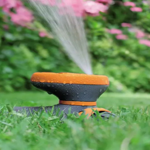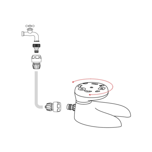 Многофункциональный круговой спринклер на базе. Простым вращением диска можно опрыскивать 8 различных областей. Максимальная скорость потока 18 л/мин.