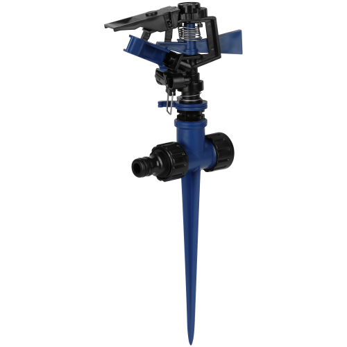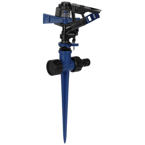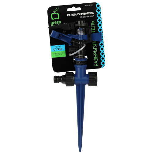 Для равномерного полива оранжерей и земельных участков идеальным инструментом является разбрызгиватель Green Apple Эта модель способствует дозированной подаче воды и позволяет полить участок площадью до 340 м2. Радиус действия импульсного вращающегося распылителя равен 360 градусов. Надежный и прочный разбрызгиватель сделан из ABS-пластика, благодаря чему изделие проявляет устойчивость к износу и повреждениям. Инструмент пропускает через себя жесткую воду, проявляя стойкость.