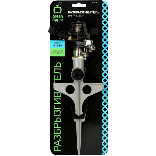 Для равномерного полива оранжерей и земельных участков идеальным инструментом является разбрызгиватель. Эта модель способствует дозированной подаче воды и позволяет полить участок площадью до 340 м2. Радиус действия импульсного вращающегося распылителя равен 360 градусов. Надежный и прочный разбрызгиватель Green Apple сделан из ABS-пластика, благодаря чему изделие проявляет устойчивость к износу и повреждениям. Инструмент пропускает через себя жесткую воду, проявляя стойкость. Разбрызгиватель имеет небольшой вес, а его размеры равны 120х305х30 мм.