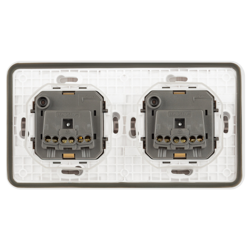 Розетка встаиваемая двойная со шторками крышкой серии Эра Эксперт скрытой установки. Накладная, IP55, цвет белый 11-2524-01. Номинальные характеристики 16А 250В. Выполнена из качественного поликарбоната, оснащён уникальными винтовыми клеммами ЭКСПЕРТ для максимально качественного зажима кабеля в механизме.