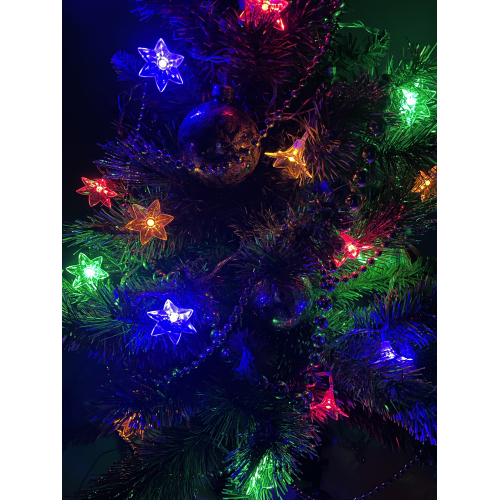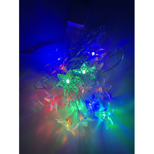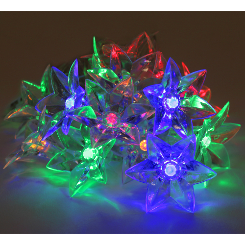 Новогодняя светодиодная гирлянда ЭРА (арт. Б0041896) с необычным исполнением ламп - они представляют собой разноцветные цветы-звёзды. На полупрозрачном проводе длиной 3 метра расположены 15 ламп с яркими экономичными светодиодами. Плафоны в форме цветков изготовлены из ударопрочного прозрачного пластика. Гирлянда выглядит оригинально и светит разнообразно - доступны 8 режимов под любое настроение: от тихого предновогоднего вечера в семейном кругу до шумной вечеринки в компании гостей. Украсите ваш дом, офис или общественное пространство быстро и красиво!