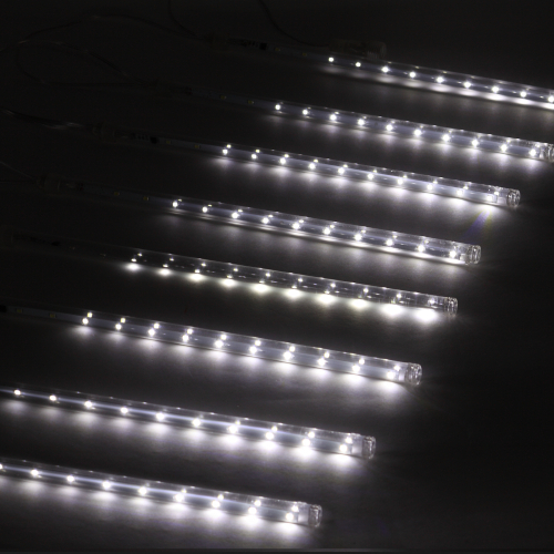 Новогодняя светодиодная гирлянда "Сосульки" (арт. Б0041910) с динамичным свечением: свет в каждой из 8 сосулек "течет" вниз в разное время - так создаётся эффект естественной капели, который поддерживается и цветовой температурой (холодный белый свет). Длина сосульки - 30 см, в каждой - по 18 ярких экономичных LED-диодов. Эта лаконичная стильная гирлянда отлично подходит для украшения пространства в зимнем сезоне, великолепно смотрится на окнах, фасадах зданий. Защищена от влаги и пыли (IP44), морозостойка - можно использовать на улице в регионах с низкими температурами. В комплект входит трансформатор - гирлянда полностью готова к подключению и отвечает требованиям пожарной безопасности. Ещё одно преимущество - специальный разъём для сопряжения с другими гирляндами. Такая модульная конструкция позволяет соединять в единую цепь до 4 гирлянд ЭРА "Сосульки", создавая длинный световой ряд для максимально эффектной иллюминации. Современная светодиодная технология экономит до 90% электроэнергии