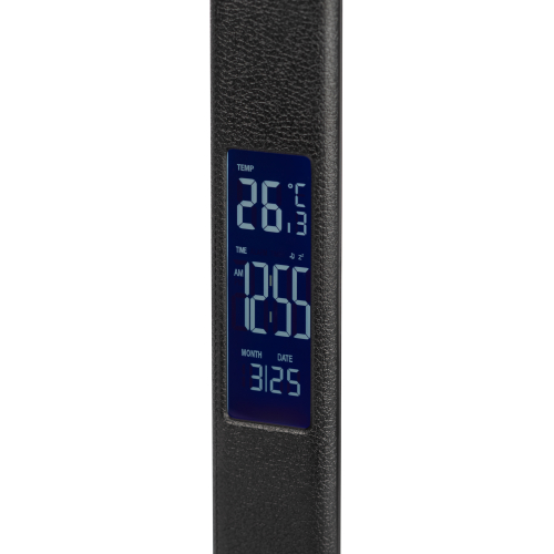Настольный светильник со светодиодами (LED) в качестве источников света в дизайне под кожу . Выбор цветовой температуры - 3 цвета: 3000К, 4500К, 6000К. Сенсорный переключатель на основании. Плавный диммер для регулировки яркости. Встроенный USB порт для зарядки мобильных устройств, встроенный модуль Qi для беспроводной зарядки. Многофункциональный дисплей: часы, будильник, дата, день недели, термометр. Складная конструкция.