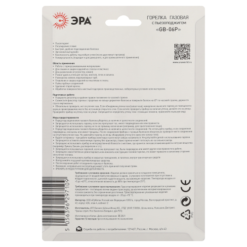 Газовая горелка на баллон с встроенным пьезоэлементом. Область применения: работа с термоусаживаемыми материалами, плавка и сварка изделий из стекла и пластмасс, разжигание огня (костер, мангал, камин и кальян), разморозка замков, водопроводных труб, удаление старой краски, обработка поверхностей и местный подогрев в производственных, лабораторных условиях, в мастерских.Система предварительного подогрева газовой смеси в змеевике внутри сопла позволяет вести работу под разными углами. Интенсивность пламени остаётся без изменений при вращении горелки в любых плоскостях на 360°