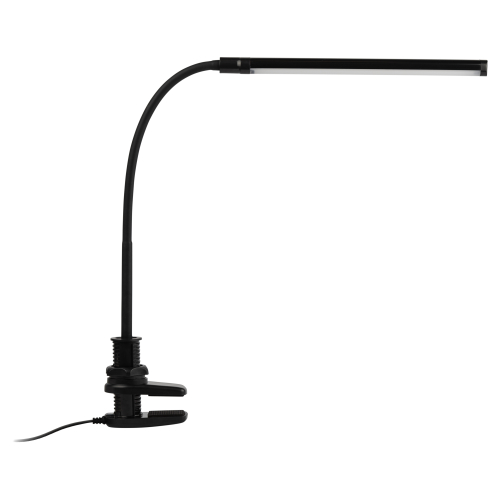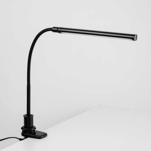 Настольный светильник со светодиодами (LED) в качестве источников света, 8 Вт. Модель на струбцине с сенсорным переключателем на плафоне. Плавная регулировки яркости. Высота плафона регулируется гибкой стойкой. Нейтральный белый свет - цветовая температура 4000К.