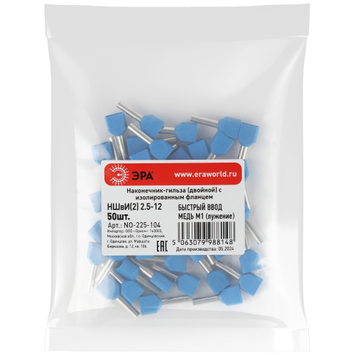 Наконечники-гильзы НШвИ(2) двойные состоят из медной луженой гильзы, один конец которой развальцован для облегчения ввода многожильного провода и изолирующей манжеты из полипропилена.