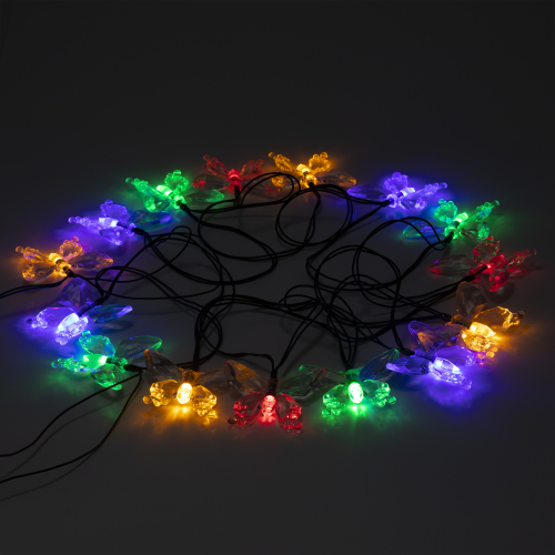 Садовая гирлянда ERASF22-15 Бабочки 5.8 м от бренда ЭРА станет симпатичным декором Вашего загородного участка! Этот уличный светодиодный светильник внесет игривости и легкости в атмосферу Вашего сада - разместите его на дереве, осветите кустарник или вход в дом. Состоит из 20 прозрачных фигурок в виде бабочек, подсвеченных светодиодами с разноцветным свечением. Гирлянда функционирует на солнечной батарее - этот тип получения энергии является наиболее экологичным, энергоемким, а также бесшумным. Питание происходит во включенном режиме, днем, а с наступлением ночи гирлянда автоматически загорается и радует Вас до 8 часов. 2 режима - постоянный и мигающий - позволят создать атмосферу праздника. Садовый светильник можно оставлять на улице в непогоду, благодаря высокой степени пыле- и влагозащиты IP44. Уличная гирлянда на солнечной батарее от компании ЭРА - оригинальный вариант для преображения площади сада.